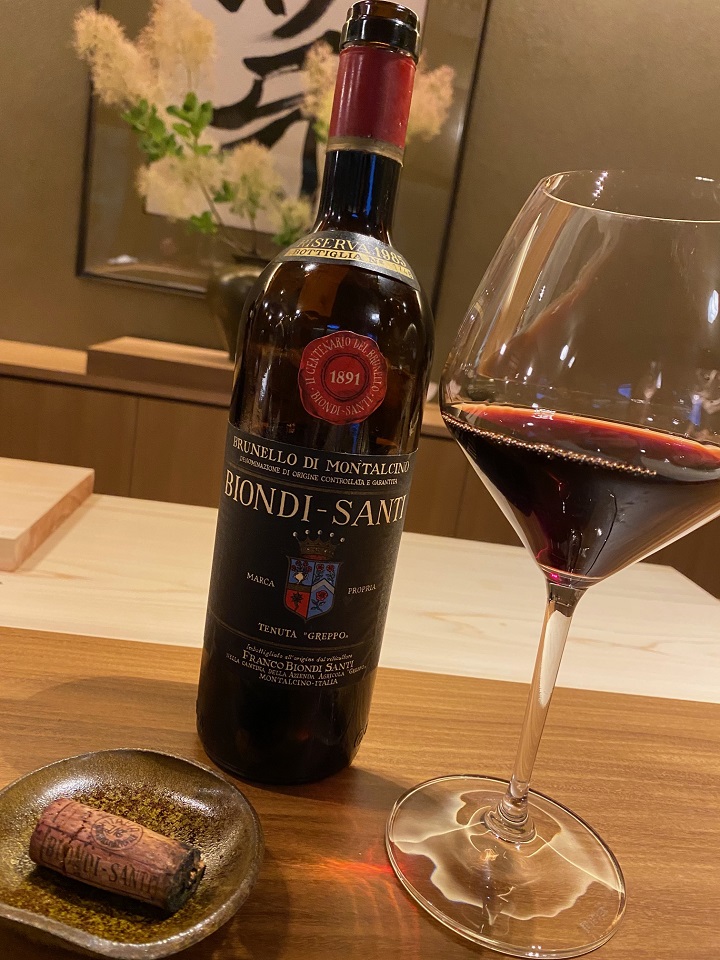 そんなリストからチョイスしたのは「ビオンディ・サンティ ブルネッロ・ディ・モンタルチーノ 1985(Biondi Santi Brunello di Montalcino)」。ブルネッロのワインを世界的な水準と名声に高めたビオンディ・サンティ。所有畑の中で最も古いイル・グレッポの葡萄だ。若い時はエレガントながら濃厚な味わいであるが、この古酒はどうだろう。