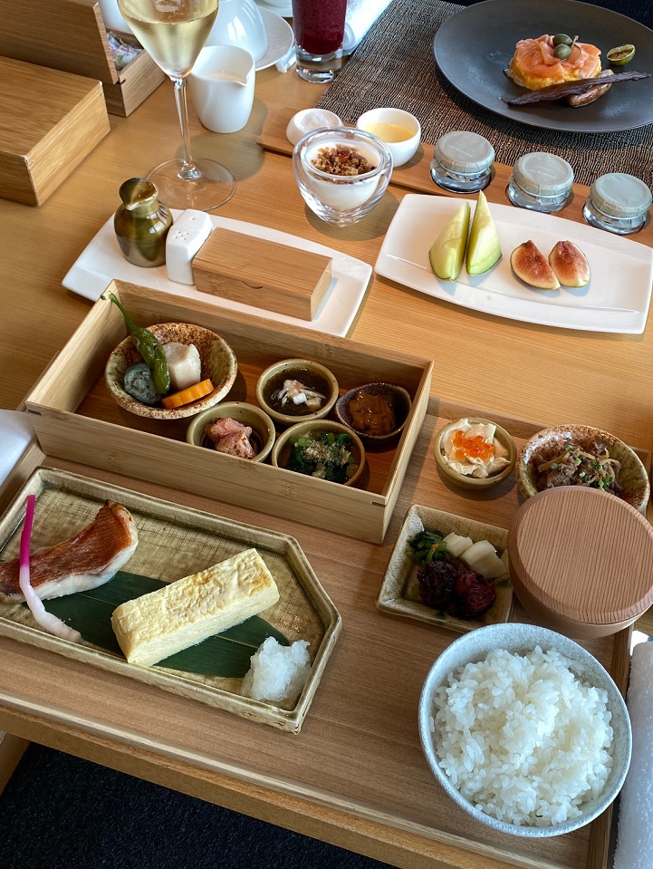 一方妻は、注文後に釜で炊き上げる長野県木島平産コシヒカリの「和朝食」を選ぶ。「出汁巻き卵と大根卸し」や「季節の焼魚」もヘルシーな味わい。東京ならではの休日ホテルライフを久しぶりに楽しむことができた。