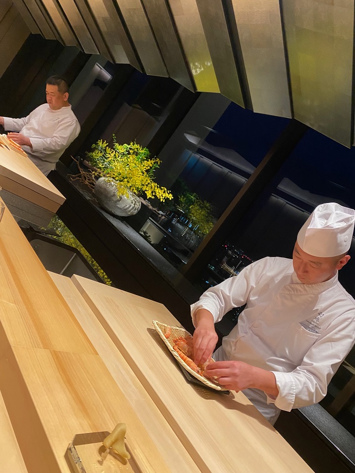 更に続いて開業したばかりの「ザ・リッツ・カールトン福岡(The Ritz-Carlton Fukuoka)」。ロビーフロア18階にある日本料理「幻珠」は、会席・鮨・鉄板焼きと3つのエリアに分かれていて、福岡の食材を生かした様々な料理が楽しめる。その中で7月半ばに遅れてオープンしたのが「幻珠 by 鮨 将司(Genjyu sushi)」。